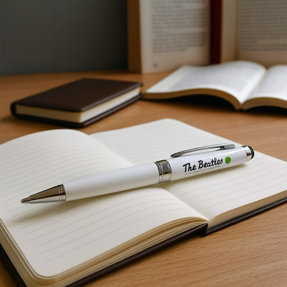 ビートルズの象徴的なロゴとアップルマークを組み合わせた、洗練されたデザインのギフトペン。