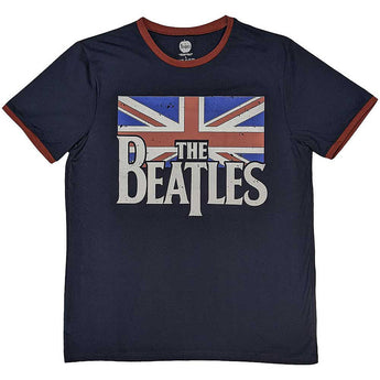 THE BEATLES ビートルズ (来日 60周年 ) - Drop T Logo & Vintage Flag / リンガー / Tシャツ / メンズ