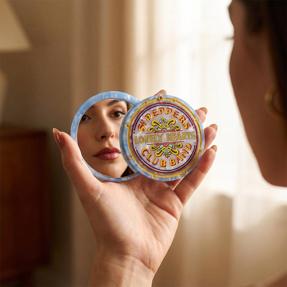 1967年発表の名盤『Sgt. Pepper’s Lonely Hearts Club Band』のアートワークをモチーフにした、ビートルズファン必携のコンパクトミラー。