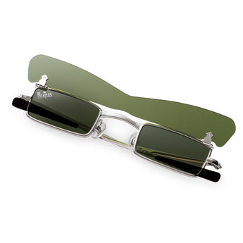 BG-039Aは、前作BG-038A(同じく当時流行した小ぶりのスクエアモデル)に太い眉のような形状が特徴的な跳ね上げレンズを取り付けたモデル。