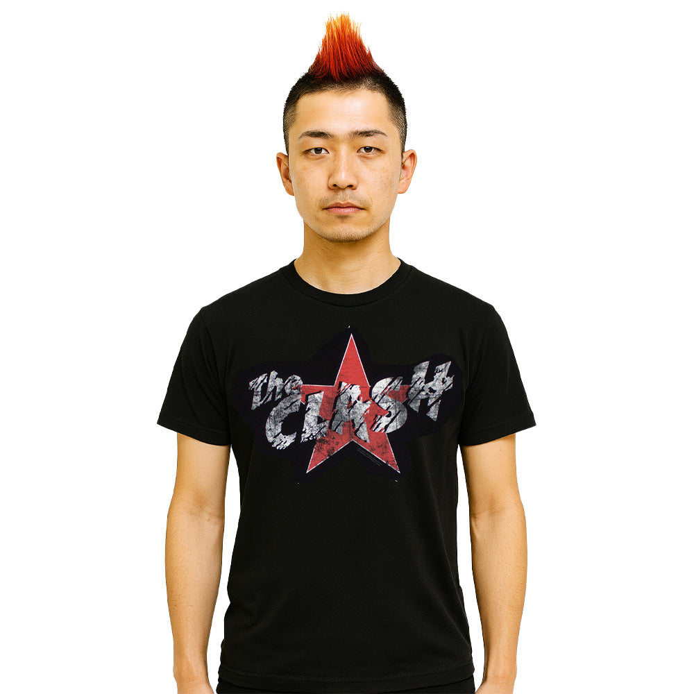 英国の伝説的パンクバンド「The Clash」の象徴的なスター・ロゴをあしらったユニセックスTシャツです。