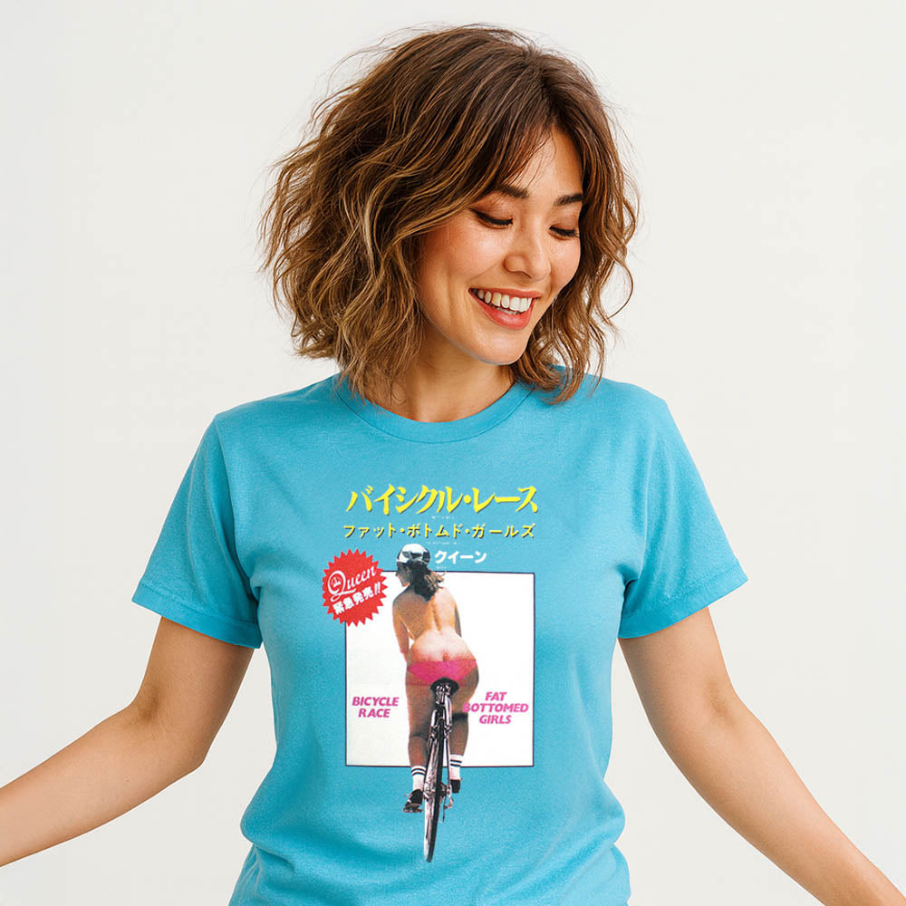 英国ロックの象徴「Queen」の名曲『Fat Bottomed Girls』をモチーフにした公式ライセンスTシャツ。
