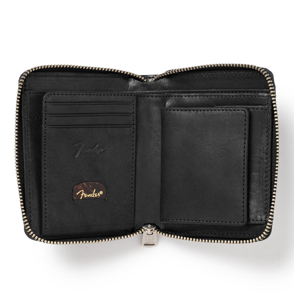 FENDER フェンダー - 二つ折り札入れ ラウンドファスナー / Black / ギターピック&ウォレットコード付き / 財布