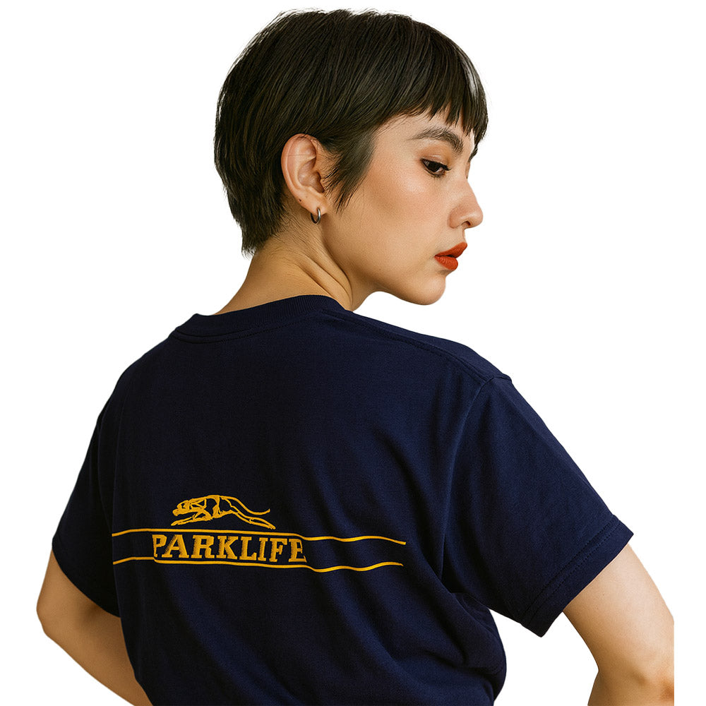 背面にのみプリントされた"Parklife Back"デザインが、さりげなくも強烈な存在感を放ちます。