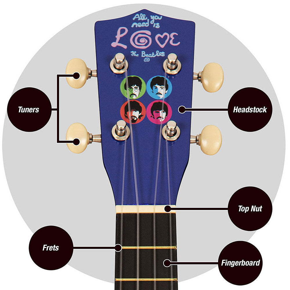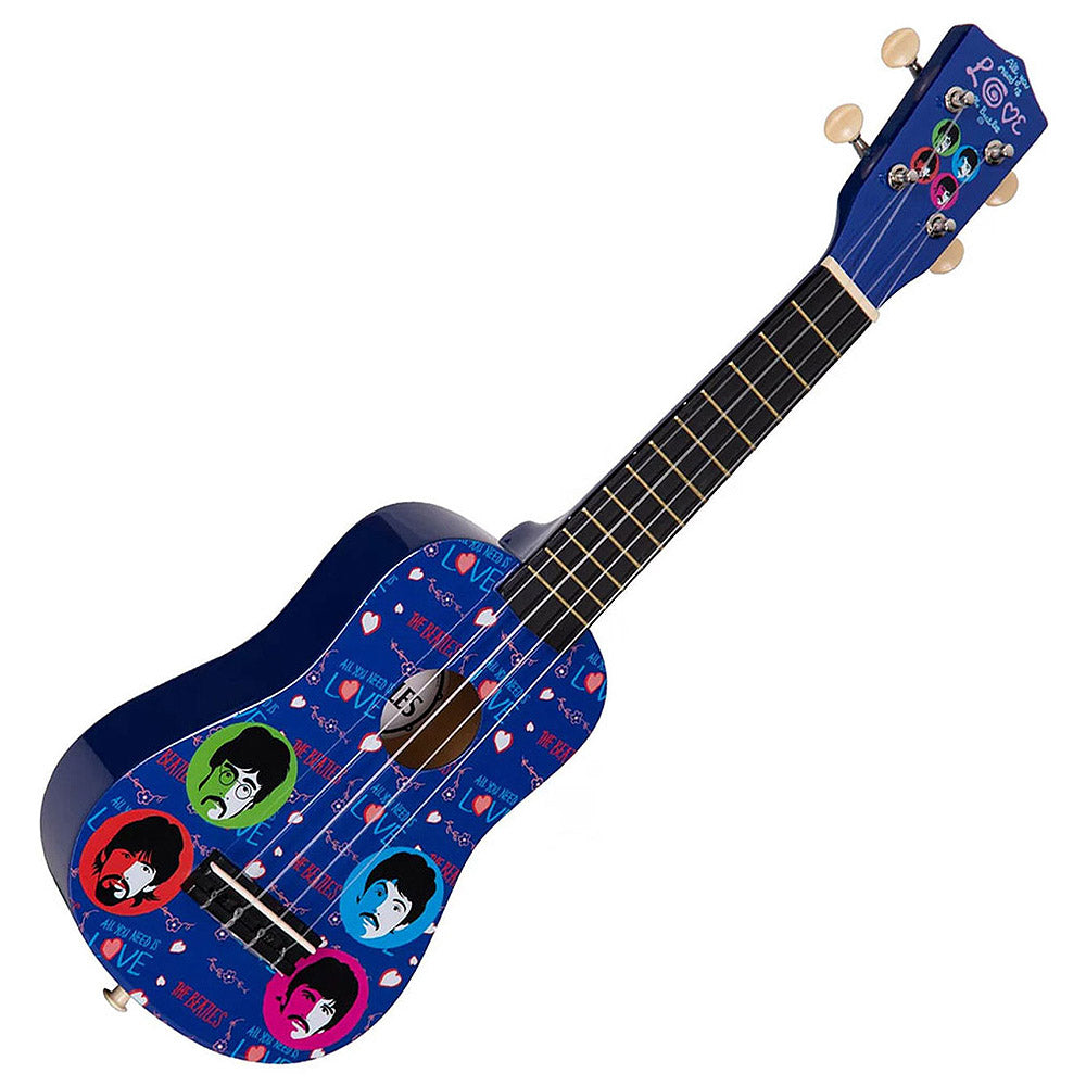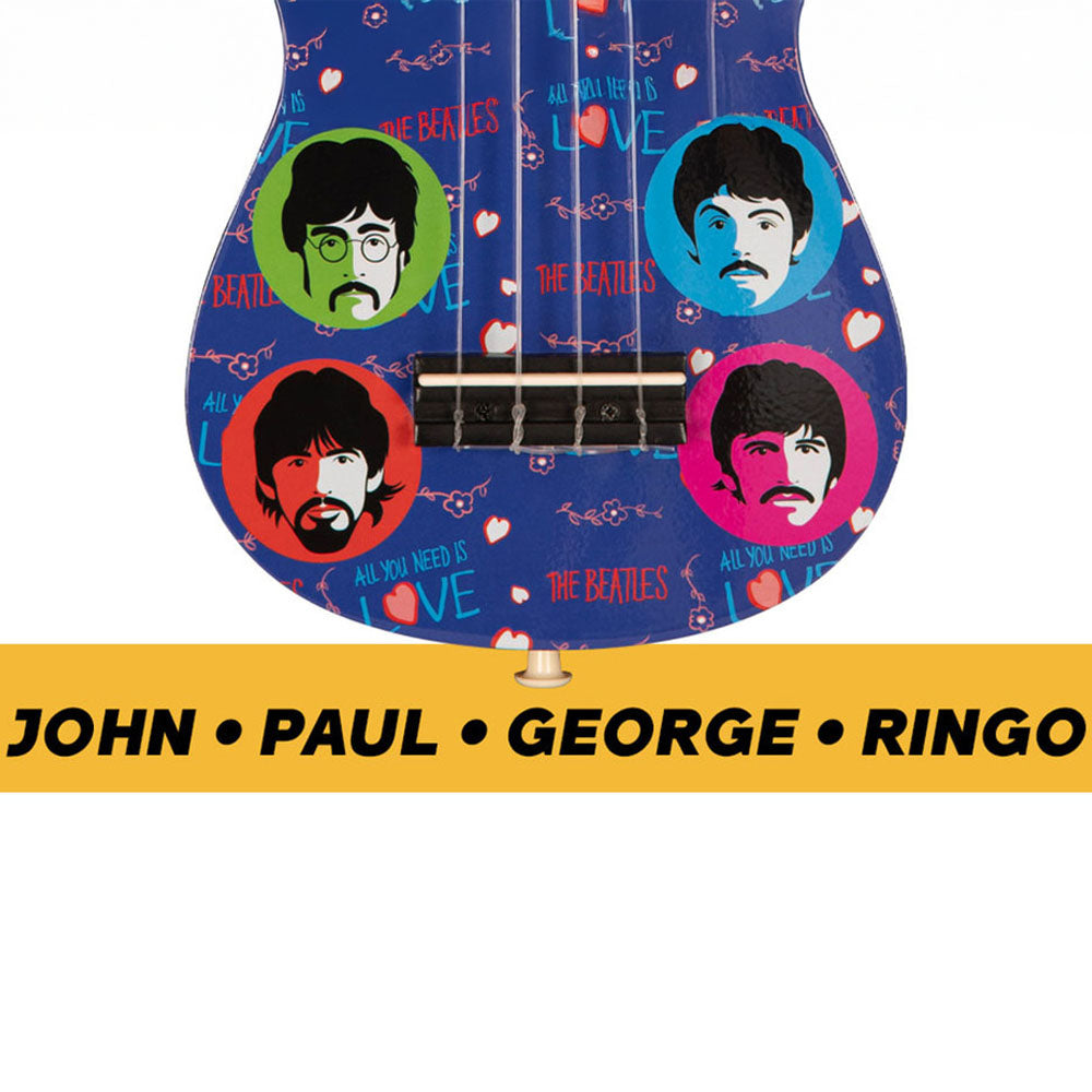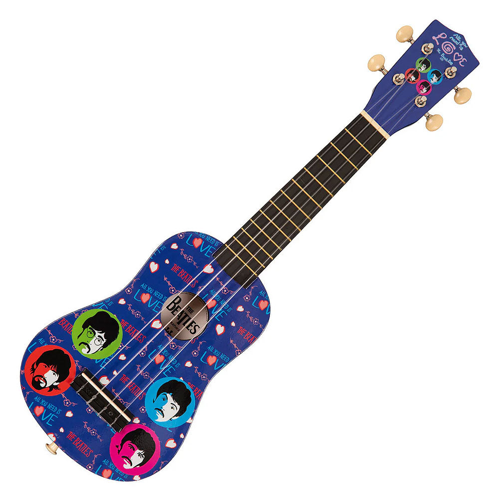 1965〜1970年のアイコニックなグラフィックをデザインした、THE BEATLES公認のナイロン弦ウクレレ「Love Is」モデル。