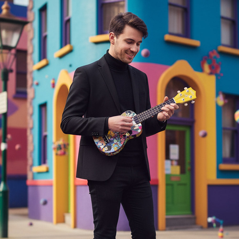 鮮やかでインパクトのあるアートワークは、ビートルズファンの心をくすぐるだけでなく、初めての楽器としても最適な一本に仕上がっています。